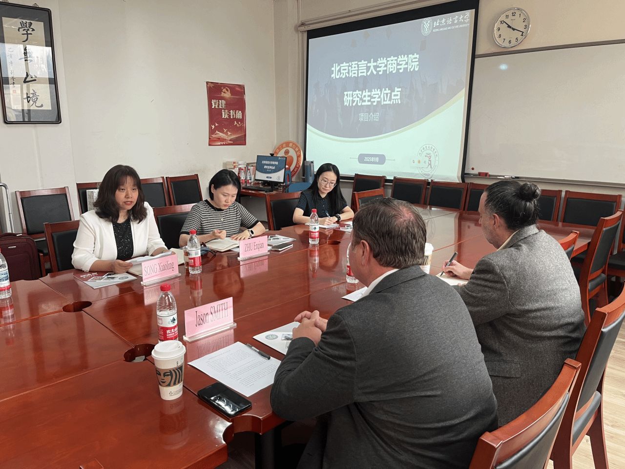 9月12日上午,美国犹他州立大学(Utah State University)商学院中国项目主任Jason Smith教授,副主任Jared Delisle副教授一行来访北京语言大学商学院,双方就国际合作交流相关事宜展开深入交流。北京语言大学商学院院长宋晓玲教授、副院长朱尔茜教授、教学秘书张雨婷、尹然出席了此次会议。