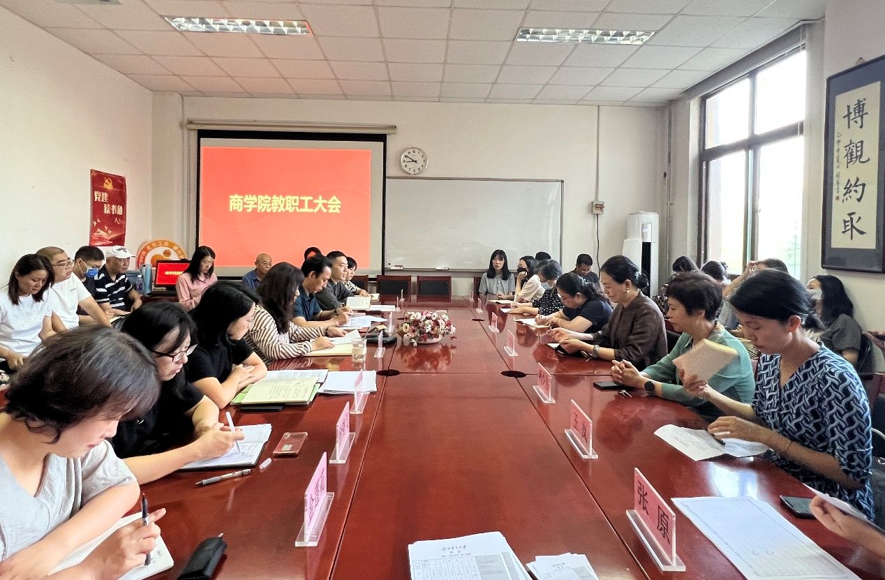9月1日上午,商学院在主南418会议室召开2023年秋季新学期全院教职工大会,全体教职工参加了会议。会议由商学院院长宋晓玲主持。