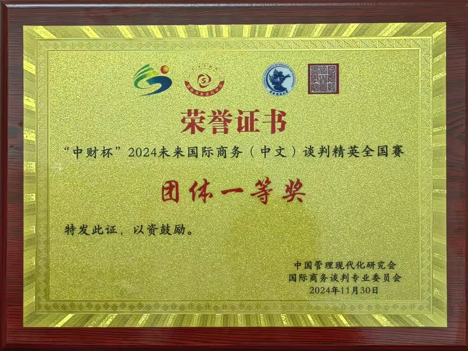 图4 团体一等奖荣誉证书