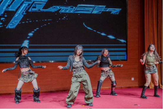 第二篇章以24级人力班王明琦等同学的舞台剧《后妈茶话会》开篇,歌喉灵动展风采,演技精湛塑角色,舞台魅力尽情绽放。24级经济班的罗凤仪和陈逸桐深情演唱《如果可以》,舞台上的她们句句饱含深情,声声动人心弦,似将故事里的遗憾与期冀都揉进了这一方天地。接着,24级国贸班张偌涵同学带来维吾尔族舞蹈《楼兰少女》,似古楼兰精灵穿越风沙,尽显神秘婀娜。第二篇章的末尾,24级金融2班伍华妍同学与23级经济班金楠同学合作带来歌曲串烧《洋葱》和《找自己》,音符跳跃,共谱愉悦旋律华章,台下掌声与欢呼不断响起,观众们沉浸在这欢乐的音乐海洋。