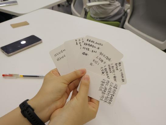 此环节,班级同学以小组为单位进行“时间管理四象限”趣味活动,把日常琐事按照紧急、重要程度进行分类,小组代表为大家分享展示了分类的思路。此外,我们邀请老师一同参与了“时间债务清算”行动,一起把解决措施卡贴到“时间承诺墙”上。班会现场气氛热烈融洽,同学们以承诺展示自律的决心,也为班会画上了圆满的句号。