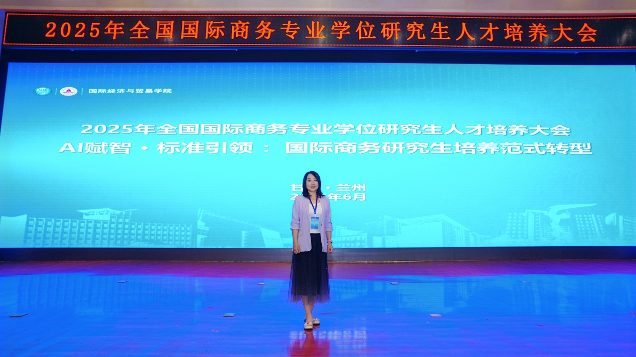 2025年6月14日,由全国国际商务专业学位研究生教育指导委员会(MIB教指委)主办,兰州财经大学承办的2025年全国国际商务专业学位研究生人才培养大会在兰州财经大学和平校区兴隆讲堂召开。本次会议以“AI赋智•标准引领:国际商务研究生培养范式转型”为主题,旨在探讨在人工智能时代背景下,如何培养适应时代发展和社会需求的国际商务人才。来自国内130余所高校的280余名专家学者参加了本次大会,北京语言大学商学院国际商务专硕办公室主任刘智媛副教授参加了此次会议。