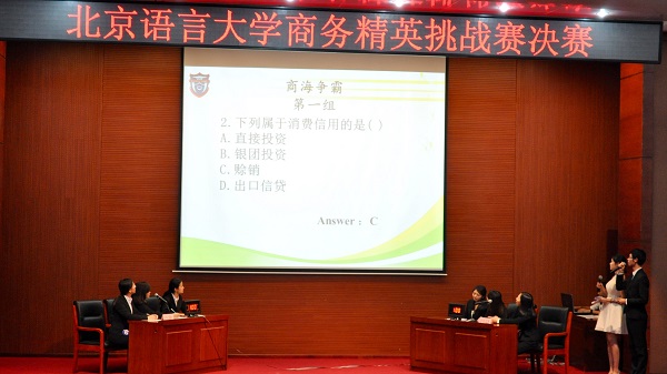 11月2日晚7点,北京语言大学商务精英挑战赛决赛在逸夫报告厅拉开帷幕。本次商务精英挑战赛由我院主办,旨在增强同学们对商务知识的兴趣,提高商务英语水平,增强理论实践技能。本次比赛历时一个多月,共有200余名同学积极参与其中。经过了激烈的初赛选拔,来自不同年级、不同院系的6支队伍脱颖而出,最终走上决赛的舞台。出席本次比赛的嘉宾有我院党总支书记曾东副教授,院长助理、学生工作办公室主任张坤副教授,团总支书记王慧媛老师,辅导员张晴老师、岳鑫老师。担任决赛的专家评委为我院金融系勾东宁副教授,国际经济与贸易系陈蕾博士和管理系祁大伟博士。