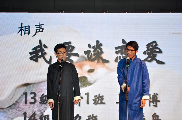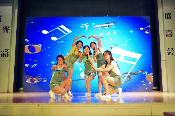 抽奖环节之后,由学办老师们组成的TF girls为大家带来的歌舞表演《宠爱》让人惊喜不已,老师们明亮的歌声和俏皮的舞蹈掀起了全场高潮。稍后,相声《我要谈恋爱》捧哏结合,言语诙谐,妙语连珠。欢笑过后,毕业生视频温暖上线,感动全场;来自毕业生学姐们的歌曲《Defying Gravity》,清亮与浑厚的嗓音相得益彰,旋律悦耳;双人舞《倾城》舞姿曼妙,古风与老上海风格巧妙融合;脱口秀《疯狂电视台2》,四位主播严肃的神情串起了令人捧腹的电视节目,精彩串词产生了诙谐的效果。