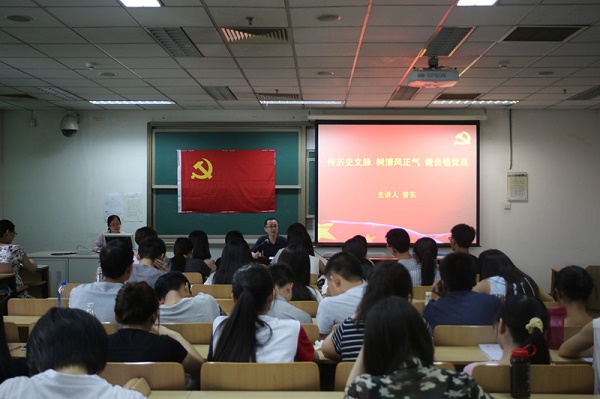 6月23日中午,我院党总支在教一楼401教室举办“两学一做”学习教育专题党课,党总支书记曾东同志以“传历史文脉、树清风正气、做合格党员”为题进行授课。我院师生党员参加了此次党课学习。