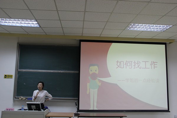 首先,就职于金佰利(中国)有限公司的王健与大家分享自己的求职经历。他表示,希望大家在求职过程中能够做最真实的自己,坚信自己独一无二;参加工作后,要严于律己,宽于待人,一旦决定进入公司,就要相信自己的选择,踏实肯干,坚持到底。随后,就职于喜达屋集团的霍然详细地给大家介绍了自己求职的过程,包括前期定位,中期面试和后期工作。她指出,同学们要做有故事的人,坚强并勇敢,自信并努力,在不断尝试中发现自己,确定方向,积累经验,开阔眼界并鼓励大家积极扩展人脉,提升自己的价值。接着,就职于中国农业银行吉林省分行的李浠如将自己的亲身经历分享给大家。她所讲述的内容包括现场面试官的提问和自己的应答。其中她提到同学们要尽早明确求职方向,利用论坛有用信息,学会保持良好自信心态。就职于厦门海关的王琳娜和同学们讲解了备考公务员过程的学习方法和努力方向。她将各类笔试题型和面试问题都一一列述,十分详尽。她提到大家在求职过程要坚持,多思考,多选择,给自己更多的可能。最后,就职于中工国际工程股份有限公司的彭腾与大家分享自己的经验。他统筹介绍了中共国际工程股份公司和所从事职业的特色,让大家更深入的了解未来从业的情况。在之后的提问互动环节,同学们积极热情,学长学姐认真作答,现场气氛热烈。