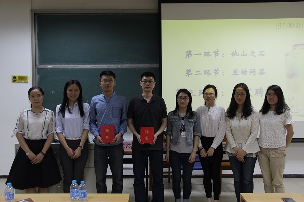 5月4日晚7点,我院于教二460教室成功举办了“谈职之间”系列活动之求职分享会。毕业于我院、现就职于金佰利(中国)有限公司的王健,喜达屋集团的霍然,中国农业银行吉林省分行的李浠如,厦门海关的王琳娜和中工国际工程股份有限公司的彭腾一同受邀担任此次的主讲嘉宾,和同学们分享自己的求职经历。我院辅导员张晴老师、彭丽娟老师出席了此次分享会。本次分享会由院学生会副主席秦嘉担任主持人,众多我院及其他院系同学到场聆听分享。