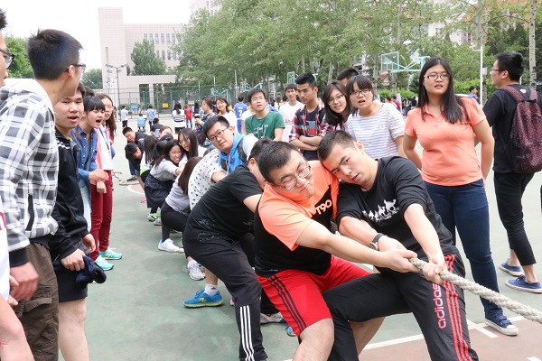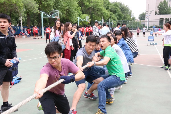 5月5日中午12:30,北京语言大学学生拔河比赛决赛在篮球场上如期上演。经过前一天初赛的激烈角逐,我院3支代表队表现出色,全部晋级,将与来自其他院系的3支队伍进行激烈对抗。比赛的第一轮采取一对一淘汰制,由15人组成的队伍以学院为单位展开对决。比赛的第二轮采取循环赛制,第一轮获胜的三支队伍依次进行比赛角逐出最终的冠军。