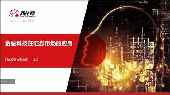 3月28日下午,同花顺的陈城老师受邀为金融专业硕士同学带来题为“金融科技在证券市场的应用”的线上专题讲座,并现场解答同学们的提问。