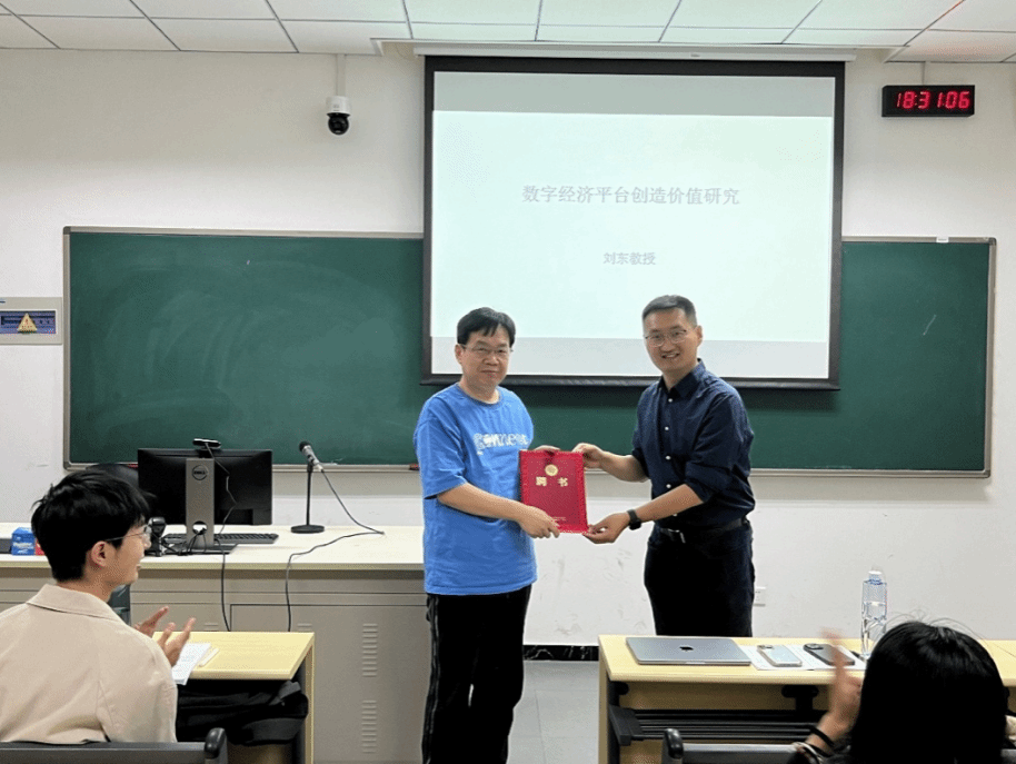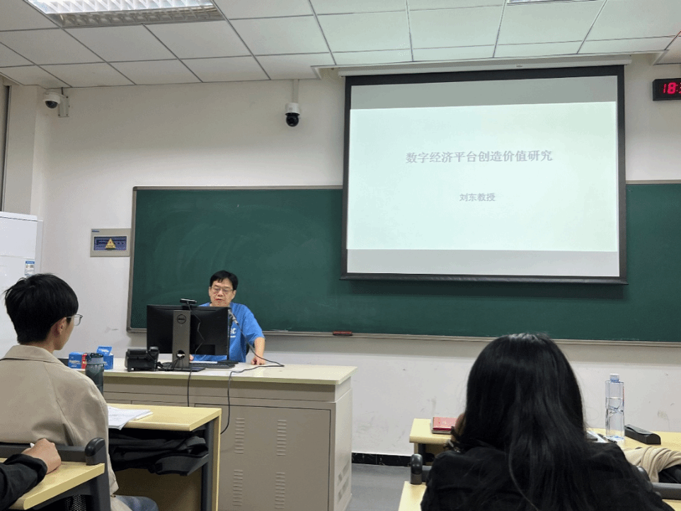 经世致用,数智赋能。为深入把握数字经济发展前沿、推动学术研究与产业实践深度融合,商学院双周学术论坛“经世·数智”大讲堂应时而生。9月22日晚,大讲堂2025年首期(总第1期)活动成功举办,本期主题聚焦“数字经济平台创造价值”。本次讲座由某平台公司公共政策部总经理刘东主讲,商学院邹杨老师主持。