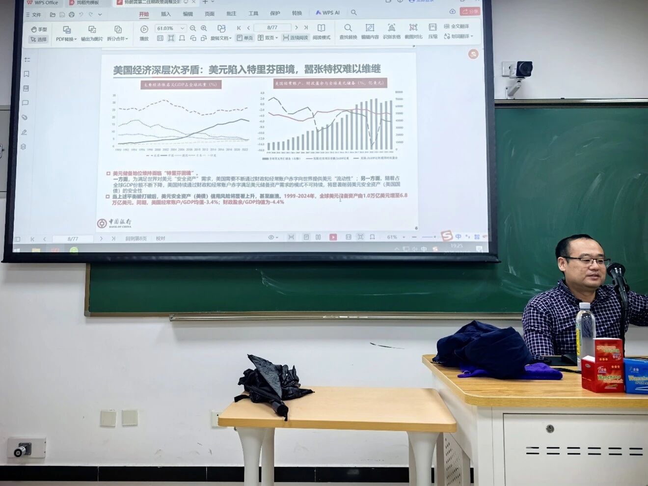 讲座伊始,熊启跃老师指出美国经济面临深层次结构性矛盾:制造业竞争力持续下滑、财政赤字与主权债务风险攀升、美元“特里芬困境”加剧,以及经济增长过度依赖消费与服务业虚高问题,为政策调整埋下伏笔。