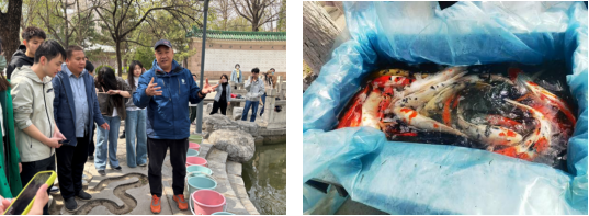 来园水畔碧波荡漾,鱼群穿梭,成为校园一道灵动的风景。此次放鱼活动不仅美化了校园环境,更通过实践强化了我院师生的生态保护意识。今后,商学院党委将继续以党建为笔,以生态为墨,继续把党建工作与生态文明建设同频共振,书写绿色发展的新篇章。