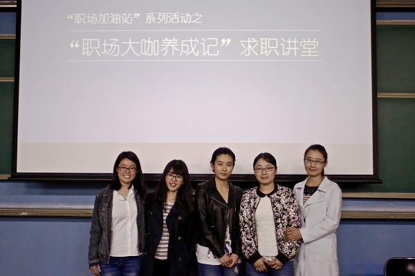 现就职于德勤华永会计师事务所的赵越首先开讲,她主要就四大会计师事务所的校招经验进行讲解。在介绍网申、笔试和面试的注意事项时,她推荐大家多向应届毕业生们了解笔试和面试的经验,熟知流程。接下来,就职于招商银行北京分行的杨雨馨分享了银行求职的经验。针对银行的招聘流程,她提到,在网申时应多关注各家银行的微信招聘账号并强调简历和实习的重要性,如果有志投身银行业,建议大家在大二大三假期时选择比较中意的银行实习。另外,她指出,在向银行投递简历时要衡量目标银行对各个职位的需求量,这会大大提高成功率。随后,就职于宝马汽车金融(中国)有限公司的王雪讲解了外企的求职经验。她鼓励大家要给自己创造实习机会并培养自己主动和职场人士打交道的意识。她同样劝诫学弟学妹们重视简历撰写。最后,考取了河北省银监局公务员的李曼与大家分享了考取公务员的经验。她介绍了公务员考试的基本流程和录取标准,并强调报名时辨清信息来源的重要性。她告诉大家在求职时最重要的不是懂得多,走的快,而是知道自己的目标在哪里。