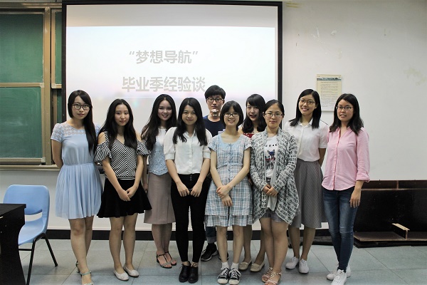 6月7日晚,我院“梦想导航”毕业季经验谈活动在主楼601教室顺利举办。杨雨馨、赵越等八位12级毕业生担任了本次经验交流会的主讲人。13、14、15级百余名同学前来聆听。