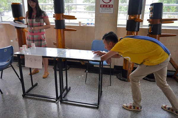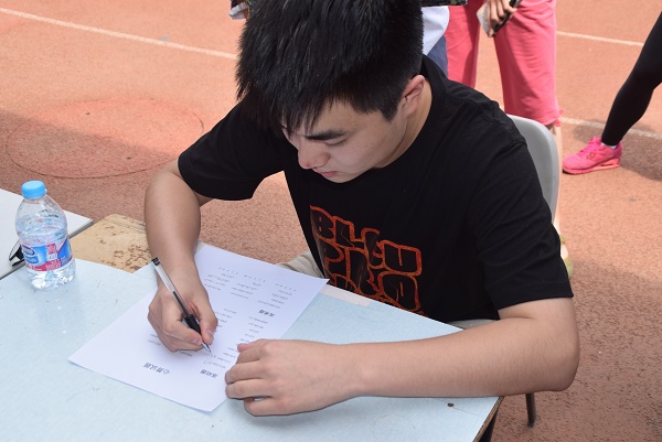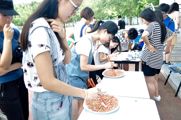 一点左右,我院工作人员已经妥当完成了赛前布置工作。滴水不漏、弹指神功、硬币直立、夹花生、双摇跳绳、踢毽,心算等七个项目的工作人员有条不紊地引导着同学们依次进行比赛。在新的赛制下,参赛选手可选择挑战单项王或全能王,他们斗志高昂,竭尽所能,各出奇招,已有的记录被不断刷新,欢声笑语响彻风雨操场。许多同学前来围观,并现场报名参加比赛,共同体验竞技赛事所带来的快乐。比赛持续到下午三点,在欢呼喝彩声中结束。6月20日中午,我院团学干部在宿舍区小花园为获胜选手颁奖,为本次活动画上了圆满的句号。