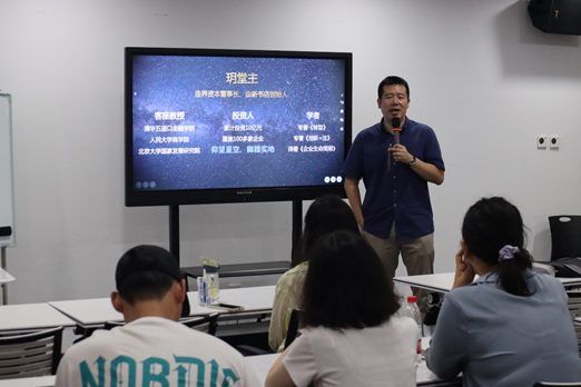 连界资本是中国顶尖商业创投公司之一。成立多年深度执行 ACE(即 A 人工智能、C 新消费、E 未来教育)的投资布局策略,共有 5 期基金,覆盖超过 200个高成长项目。本次实训项目的主要地点设在连界资本的创新园区,开营第一天就邀请到连界资本的董事长王玥跟大家进行经验分享。玥总还兼任清华大学五道口金融学院、北京大学国家发展研究院等机构的客座教授、多家顶级基金母基金的投资人、近 50 家高成长创新公司的投资人,他不仅用真诚的话语讲述了其传奇的经历,更用丰富的案例和生动的讲解传达了其不断突破、不断进取的奋斗理念,让在场的同学在长达两个多小时的分享中收获满满。