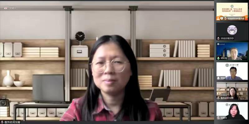 最后,宋晓玲院长就本次大赛做出点评。从形式上,学生通过教室现场录制、线上会议录制教学视频来实现翻转课堂,课件和教辅材料等均制作精良。从选题上,学生眼光敏锐独到,紧扣“文化自信”、“实体经济”、“企业社会责任”、“中国式现代化建设”等主题,极具研究价值。从内容上,将专业知识和思政元素有机融合,在教学过程中将思想价值观念适时适当表达,做到润物无痕。最后,宋院长针对如何组织PPT给与了建议,她对于同学们面临严峻疫情形势和繁重学业压力,仍克服重重困难、精心准备的态度给予高度赞扬。
