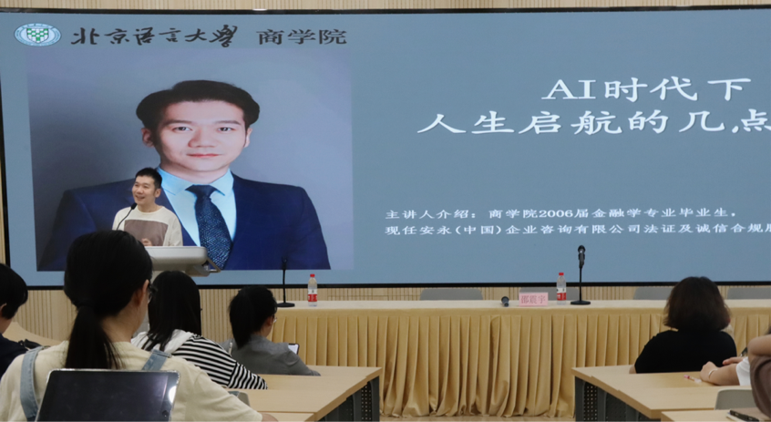 5月11日晚,北京语言大学商学院“CDG·职谈”第一期在教二101举办。主讲嘉宾邵震宇校友为商学院2006届金融学专业毕业生,现任安永(中国)企业咨询有限公司法证及诚信合规服务部合伙人。商学院100余名学子到场参与活动。