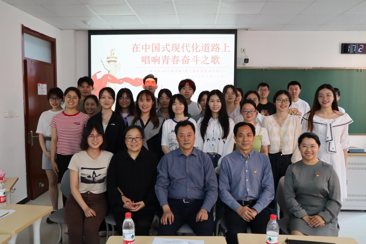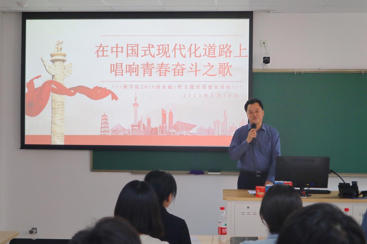 为深入学习贯彻党的二十大精神,深刻学习领会习近平总书记关于“中国式现代化”重要论述,5月18日下午,校党委书记倪海东深入基层联系商学院班级,出席20级金融1班“在中国式现代化道路上唱响青春奋斗之歌”主题班团建设活动。班团活动由班主任李莉老师主持,商学院党委书记张政、党委副书记王慧媛出席活动,金融1班全体同学参加本次活动。