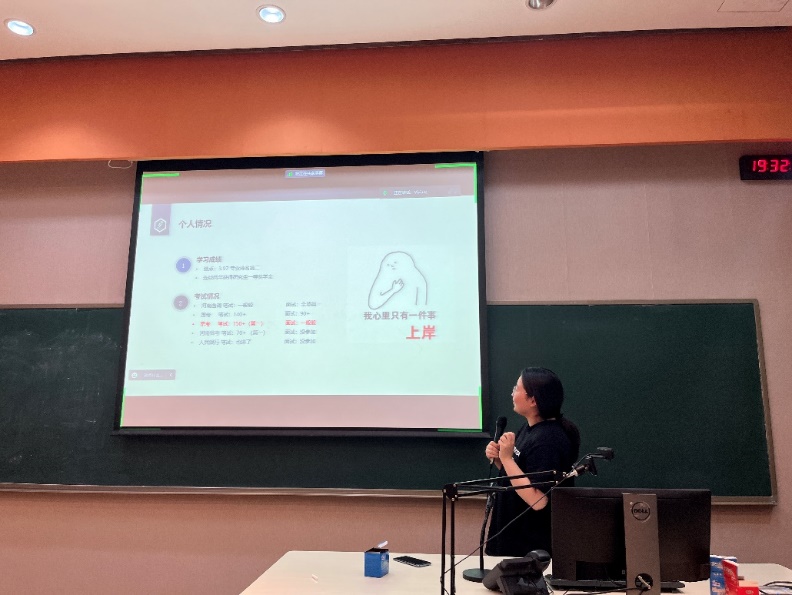 考取公务员的曾子骄分享了自己从入学以来的科研和实习规划,建议大家充分利用好时间,尽早明确未来发展目标。此外,曾子骄还从行测、申论和专业课三个方面分享了在考公准备阶段的要点,让同学们对公务员备考有了更加深入的了解。即将就职于长城证券研究所的高红健分享了自己的实习经验和相关信息渠道。他表示在求职过程中可能会遇到困难,但是只要认真准备,沉着应对,在不同的笔面试中积累经验就会顺利到达成功的彼岸。即将就职于延庆区市场监督管理局的王文向大家介绍了选岗、笔试、面试中的过程并分享了备考经验。建议大家放平心态,结合自身实际情况选择适合的发展方向。即将就职于招商银行沈阳分行的张爱伦向大家介绍了银行的工作特点及如何选择不同类型的银行,希望大家能够发散思维,多元探索。分享环节结束后,同学们就考证、实习等方面问题进行了提问,得到了学长学姐的耐心解答。