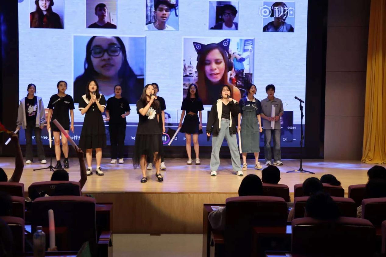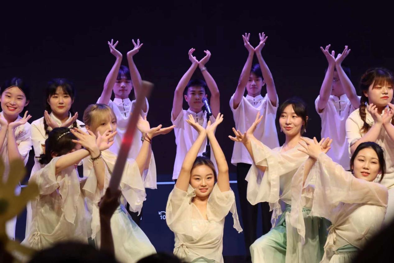 “当你走进这欢乐场,背上所有的梦与想。”陈科硕、高银涛声情并茂演唱《消愁》,拉开了第二章的序幕。22级金融1班本科生们带来了舞台剧《平芜尽处是春山》,再现了成长路上追梦的身影,即便遇到困难也要永怀最初的梦想和坚定的信念,不断奋斗,不断成长。研究生刘慧璐、马迪合作带来的双人合唱《慢冷》,将情感融入歌声,温柔而有力量。由本科生罗艺璇、刘畅等带来的舞蹈串烧再次引爆全场,欢畅淋漓的舞姿,见证了青春的如花绽放。22级国贸班本科生带来一首《稻香》合唱,家是温暖的港湾,希望大家都能有温暖的力量和勇气去迎接未来。22级会计班本科生带来舞蹈《哇young!》,他们充满童趣,也充满朝气,诠释了青春年华中奋斗是最好的姿态。本科生曹瑜芳、梁艺馨等同学们带来歌舞《万疆》、《茉莉花》,吾国万疆,大爱无疆,同学们用优美的舞蹈、整齐的合唱表达了对祖国山河的热爱,对华夏壮美的感慨。22级金融3班本科生带来合唱《something just like this》,旋律轻快,曲调轻盈,引发现场阵阵合唱。