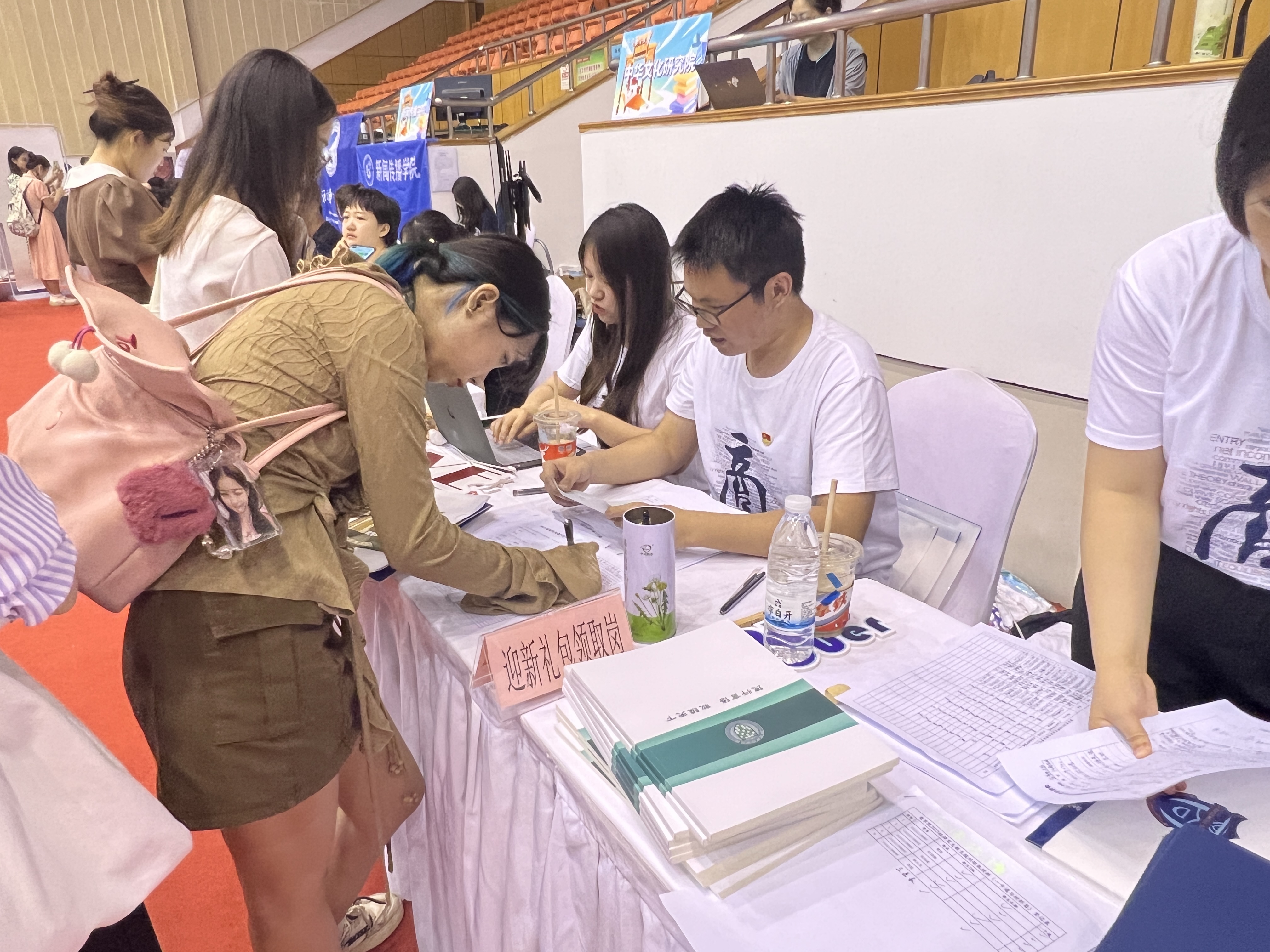 为有序进行2023级新生报到工作,商学院以党团学为轴,组成了一支热情、认真、负责的工作队伍。在工作人员的组织带领下,新生们完成了人脸识别登记、资格复查和信息登记,并领取了学院精心准备的迎新大礼包,内含带有商院特色的文件袋、笔记本、签字笔和卡套,这份礼物代表着学院对广大新生们的殷切希望。此外,在新生加油站,同学们在相机前大方展示,为自己的大学报到留下了珍贵合影,彰显着商院学子青春风貌。
