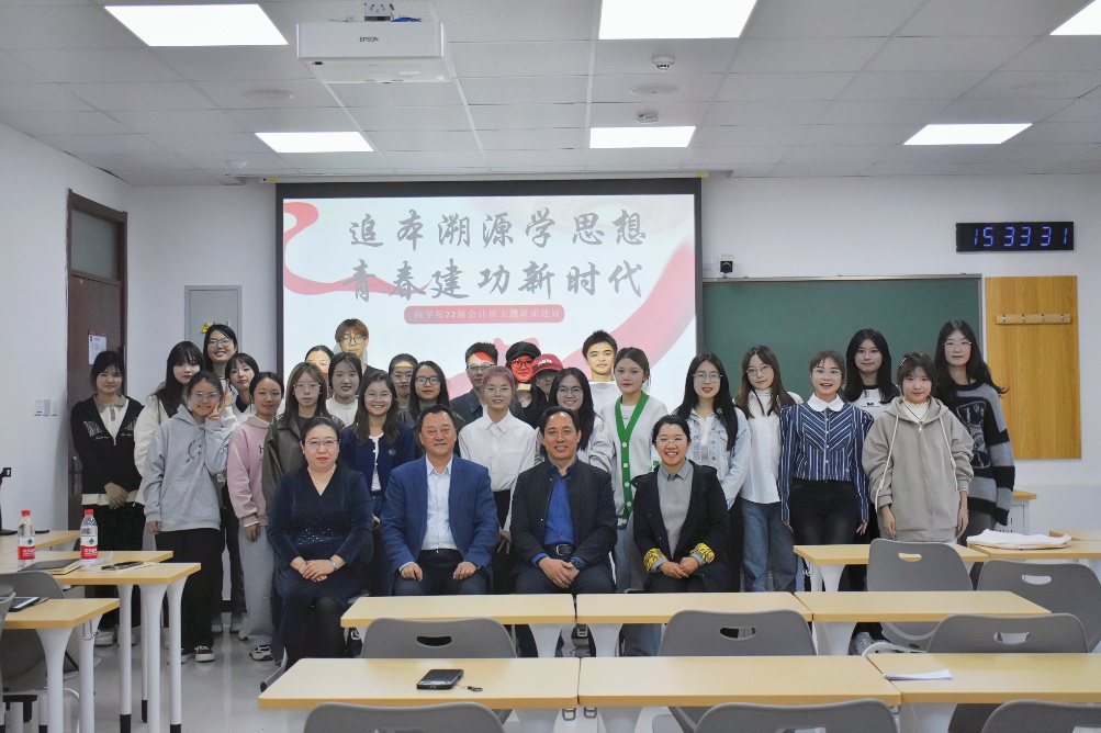 为深入学习习近平新时代中国特色社会主义思想,增强大学生的历史责任感和使命感,激发“强国有我”的青春激情,勉励青年人把“小我”融入祖国的“大我”之中,10月20日,商学院22级会计班“追本溯源学思想,青春建功新时代”主题班团建设活动顺利开展。北京语言大学党委书记倪海东出席活动,商学院党委书记张政、党委副书记王慧媛、班主任杜美杰陪同参与此次活动。