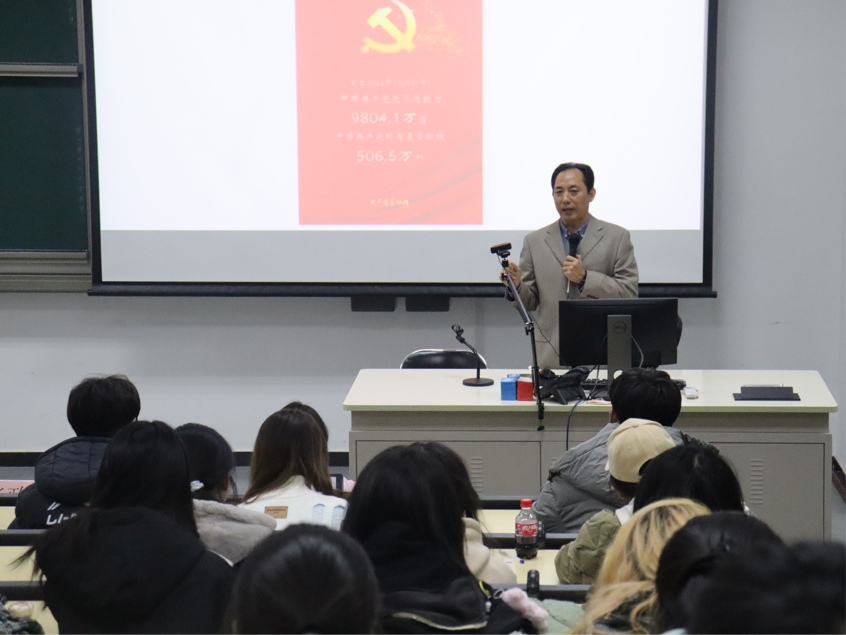 为深入学习贯彻习近平新时代中国特色社会主义思想,加强对学生的思想引领,提高入党积极分子的理论水平和思想素质,商学院于11月13日举办2023年初级党校开班暨党课第一讲。商学院党委书记张政老师出席开班仪式并进行党课第一讲,辅导员刘欣怡老师主持,全院近70名入党积极分子聆听了党课。