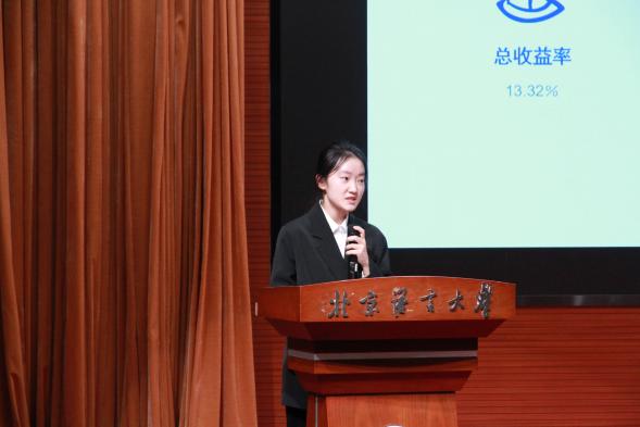 比赛分为投资陈述与小组答辩环节,各队伍用精心准备的PPT展示自己的投资策略、成员分工、交易成绩等,他们结合宏观经济政策、行业现状以及股票走势,进行生动阐述,并将自己所学的专业知识运用到实际操作和分析中。评委老师对选手们的投资报告和实操过程提出了指导意见,并就每支队伍的投资策略进行深入提问。选手们沉着应对,逻辑清晰,将自己在比赛中的思考融入回答,展现出同学们的专业能力和创新思维。
