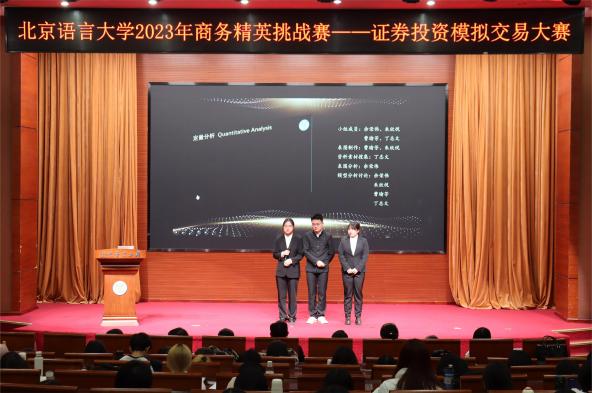 为了提高学生的金融素养,加强对专业知识的理解和运用,进一步培养学生的职业技能,11月23日晚,商学院成功举办北京语言大学2023年商务精英挑战赛——证券投资模拟交易大赛。在经历了初赛的激烈角逐后,最终有八支队伍脱颖而出晋级决赛。莅临本次比赛的嘉宾有商学院党委书记张政、党委副书记王慧媛、学办负责人刘珊、团委书记孙祎阳、辅导员辛茹雯。商学院金融系系主任徐晓飞副教授、会计系副系主任金莲花教授、金融系刘北博士担任比赛评委。