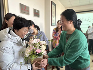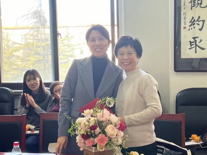 欢送会上,大家齐聚一堂,共叙别情。巩老师抚今追昔,回忆在学院工作的点点滴滴,言谈中饱含对教育事业的热爱,表达了对学院深深的眷恋和感激,并祝愿学院越来越好。在座的领导和老师感慨万千,回顾和巩老师一起工作的美好点滴与珍贵记忆。一段段美好的时光让人倍感温暖,一句句温情的话语流露出万千不舍。年轻老师对巩老师的真诚关爱、细心指导表达了深深的感谢,表示也要向巩老师一样,为学生的成长成才努力奉献,为学院高质量发展贡献自己的力量!管理系系主任王岚老师和刁惠悦老师代表学院为巩老师送上了鲜花和饱含着全体老师祝福的纪念卡片。