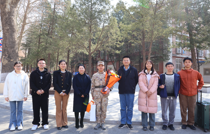 三月冬去,燕鸟还巢;三月春来,学子归校。在这个明媚温馨的季节,我院本科生陈卓、黎永康两位同学向军旅生活挥别,光荣退伍,返回学校。商学院党委副书记王慧媛、学办负责人刘珊及辅导员们在校迎接两位同学,学校武装部教师钦浩也到达现场,与学院老师一同为他们送上诚挚的关怀和慰问。