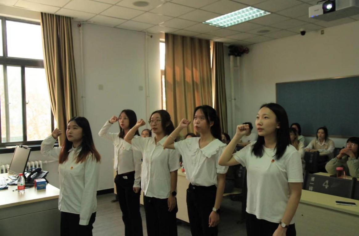 入团仪式不仅仅是成为一名光荣团员的标志,同时也可以让大家更加深刻地认识到自己的责任和使命。在团员代表的领誓下,四名新团员面向团旗,右手握拳举过肩,面向鲜艳的共青团团旗进行了庄严的宣誓。
