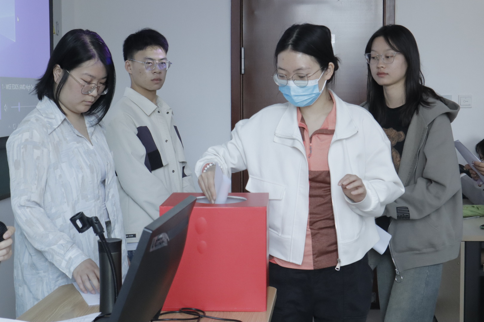 会议伊始,主持人介绍了与会人员的出席情况并宣布学生代表大会正式开始。第一项议程,主持人介绍代表候选人预备人选的产生过程,整个过程充分落实公正、规范、民主原则,最终由学生代表一致表决同意,确定代表候选人建议人选名单。第二项议程,经与会学生代表表决,会议通过了监票人及计票人名单。第三项议程,总监票人介绍代表候选人,并以公正、公开、透明的方式组织开展选举工作。与会代表在悉知选举规则后,以无记名的投票方式进行差额选举。第四项议程,计票员统计选票情况,同时,大会组织与会人员观看学习党史教育片《红色基石》。第五项议程,总监票人报告计票结果,主持人宣布商学院出席北京语言大学第十七次学生代表大会、第二十次研究生代表大会的18名本科生代表和5名研究生代表,并将按要求上报校团委审批。